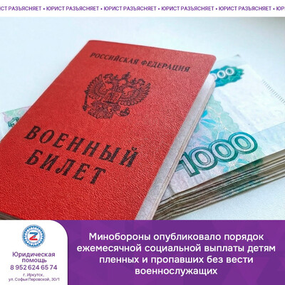 2 февраля 2026 года Министерство юстиции зарегистрировало Приказ Минобороны от 24 декабря 2025 года №865, которым утвержден Порядок назначения и осуществления в ВС РФ ежемесячной социальной выплаты. Право на выплату было закреплено Указом Президента №1110 от 26 декабря 2024 года: размер выплаты равен прожиточному минимуму на ребенка по месту жительства. Порядок назначения и осуществления этой выплаты определяется федеральным органом, где предусмотрена военная служба (пункт 6 Указа).При этом между предоставлением права и появлением опубликованного порядка именно для ВС РФ прошел почти год. Что закреплено в порядке?Порядок определяет процедуру выплаты детям военнослужащих, которые захвачены в плен или пропали без вести в период участия в СВО либо при выполнении задач на территориях проведения контртеррористических операций или специальных задач на территории Сирийской Арабской Республики. Выплата назначается каждому ребенку. Командир (начальник) воинской части в течение суток после подтверждения факта плена/пропажи уведомляет военные комиссариаты по месту жительства детей. Военкомат в течение 3 рабочих дней уведомляет потенциальных заявителей (совершеннолетних детей, обучающихся очно, но не более чем до 23 лет; совершеннолетних детей, ставших инвалидами до 18 лет, а также законных представителей несовершеннолетних детей). Как подать заявление?Заявление подается непосредственно командиру (начальнику) воинской части либо через военный комиссариат по месту жительства (пребывания). Документы, которые прикладываются к заявлению:• документ, удостоверяющий личность заявителя; • свидетельство о рождении ребенка (до 14 лет); • документ, подтверждающий родственную связь с военнослужащим; • документ, о месте жительства (пребывания) ребенка; • справка образовательной организации с датой начала обучения; • документ, подтверждающий инвалидность (для совершеннолетних детей, ставших инвалидами до 18 лет). ️Копии документов предъявляются с оригиналами или представляются в надлежаще заверенном виде. Для документов на иностранном языке требуется нотариально заверенный перевод. Сроки принятия решения и информированиеВоенкомат помогает в сборе документов и в течение 3 рабочих дней направляет их в воинскую часть. Командир воинской части в течение 5 рабочих дней издает приказ о назначении выплаты. Выплата назначается со дня, указанного в приказе командира: • плен — за период нахождения в плену, но не ранее 1 декабря 2024 года; • безвестное отсутствие — за период БО, но не ранее 1 декабря 2024 года. ПеречислениеСовершеннолетнему ребенку — на его банковский счет, несовершеннолетнему — на счет на его имя либо на номинальный счет законного представителя. Если вам необходима консультация по правовым вопросам, вы можете обратиться к юристу Единого центра сопровождения участников СВО и членов их семей по телефону: 8 952 624 65 74. ⓏЦентр поддержки 38 Телефон: 8 800 201 38 01 centr.38@mail.ruⓏСайт: centr-svo.rost38.ru/ 🖭Чат-бот для СВОих Мы в MAX#юрист_разъясняет #соцзащитанасвязи #центрподдержки38 #СВО_законодательство