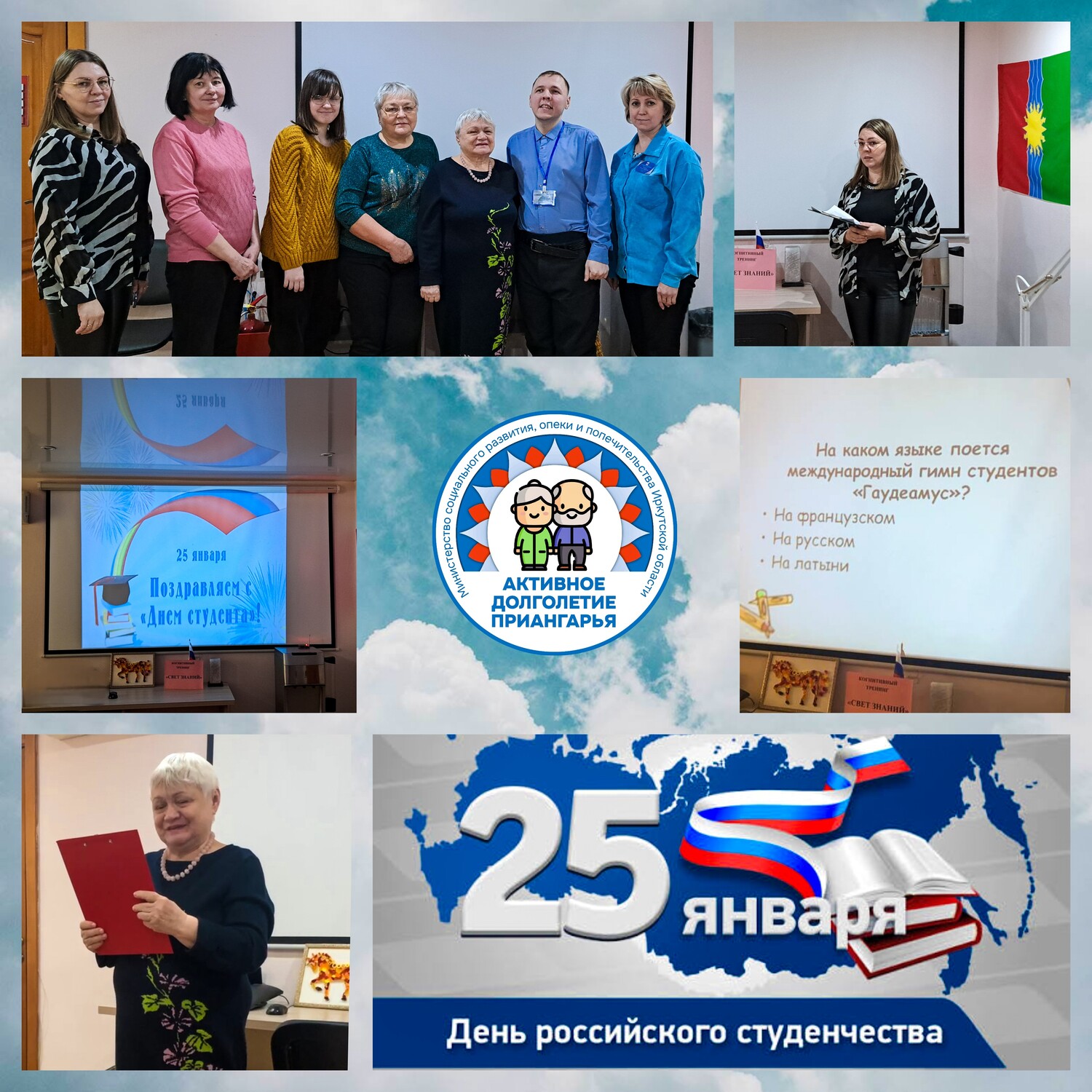 В рамках реализации региональной программы Иркутской области «Активное долголетие» в отделе полустационарного социального обслуживания ОГБУ «УСЗСОН по городу Братску» 23 января 2026 года для получателей социальных услуг сотрудниками отдела Кокориной Татьяной Рафаиловной и Чижовой Мариной Александровной была проведена тематическая программа с элементами когнитивного тренинга «Свет знаний», приуроченная ко Дню российского студенчества.