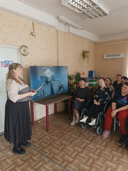 . Активное участие в подготовке и проведении мероприятия приняли получатели социальных услуг. Они подготовили дополнительный материал по заданной тематике «Созвездие великих имён», включив в него биографии выдающихся учёных: Курчатов И.В., Ломоносов М.В., художников: Репин И.Е., Нестеров М.В. и поэтов: Есенин С.А., Ахматова А.А и Ахмадулина Б.А и много других известных имён.